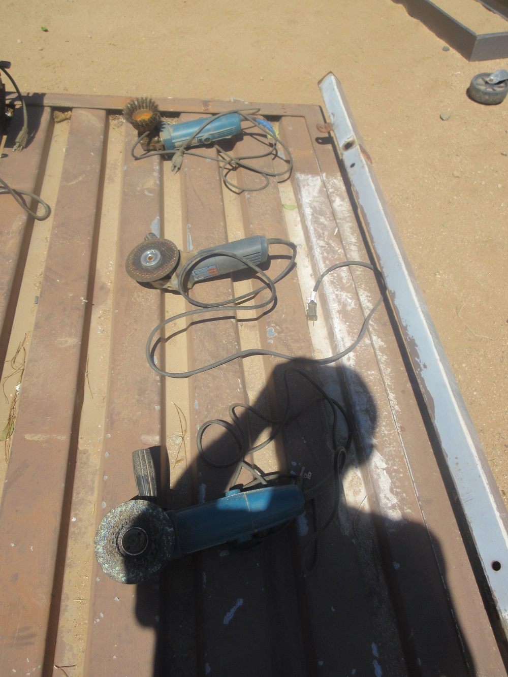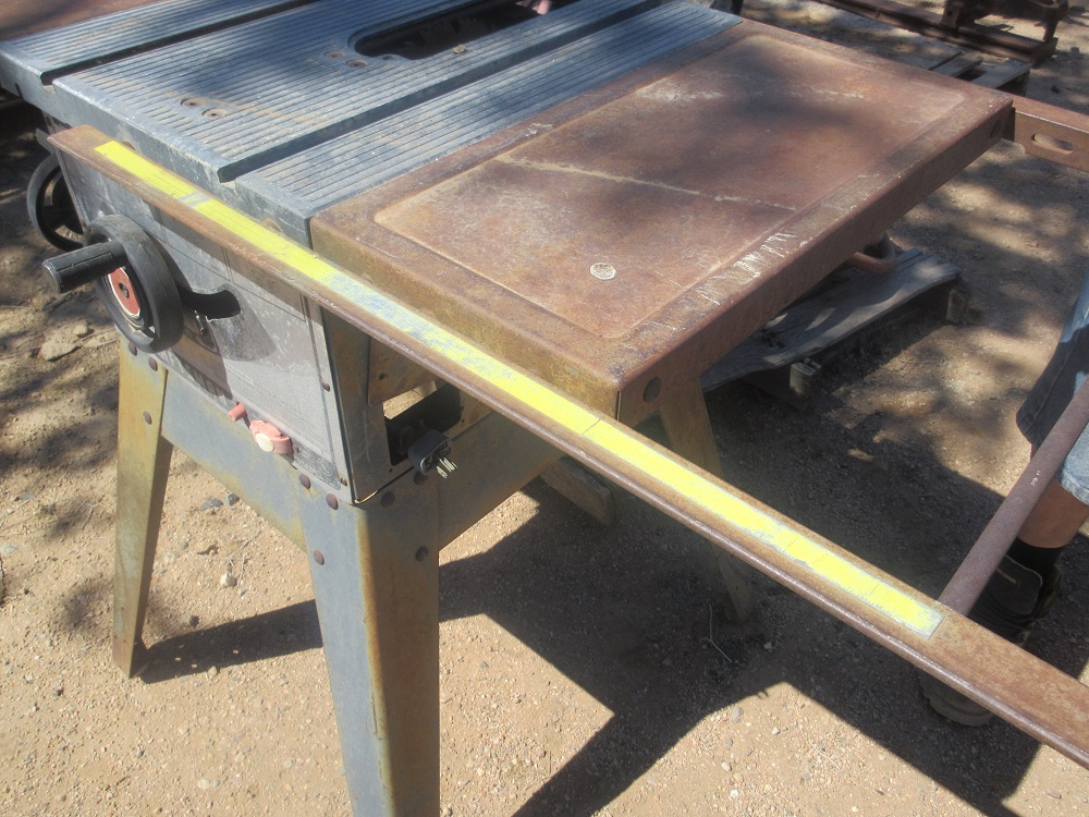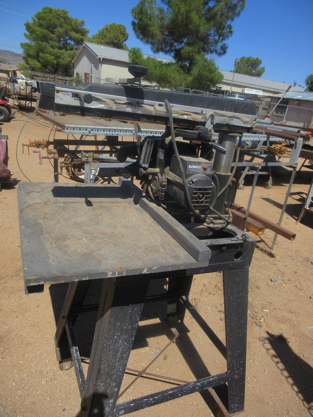 angle grinders; tablesaw; radial arm saw; steel racks;