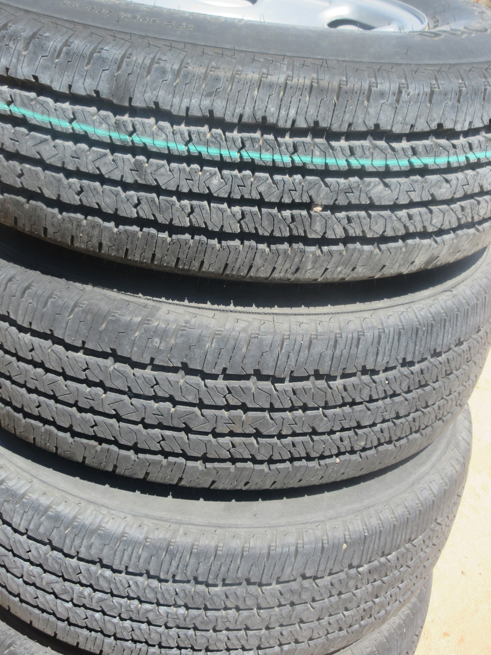 of tires & rims for Chevy, size LD245-175-R17; truck sides; trailer frames &