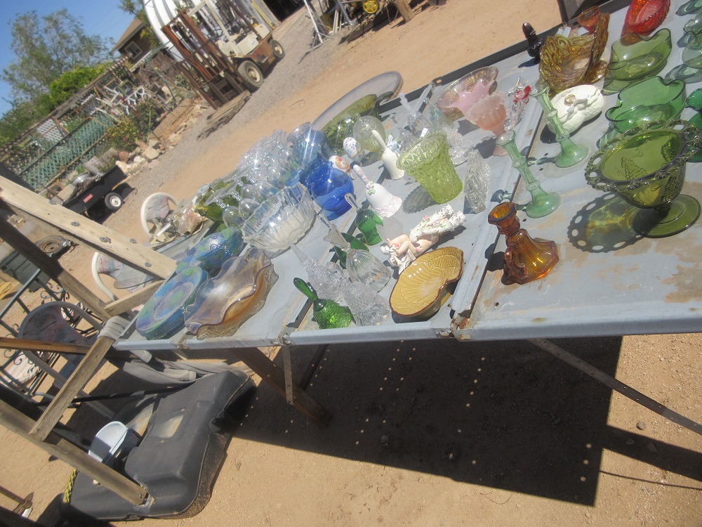 collectible swords; miscellaneous glassware; some furniture; small safe; tires incl. set