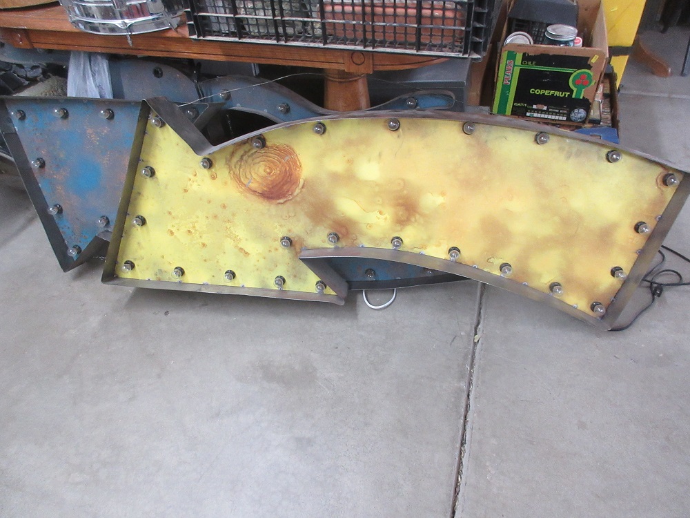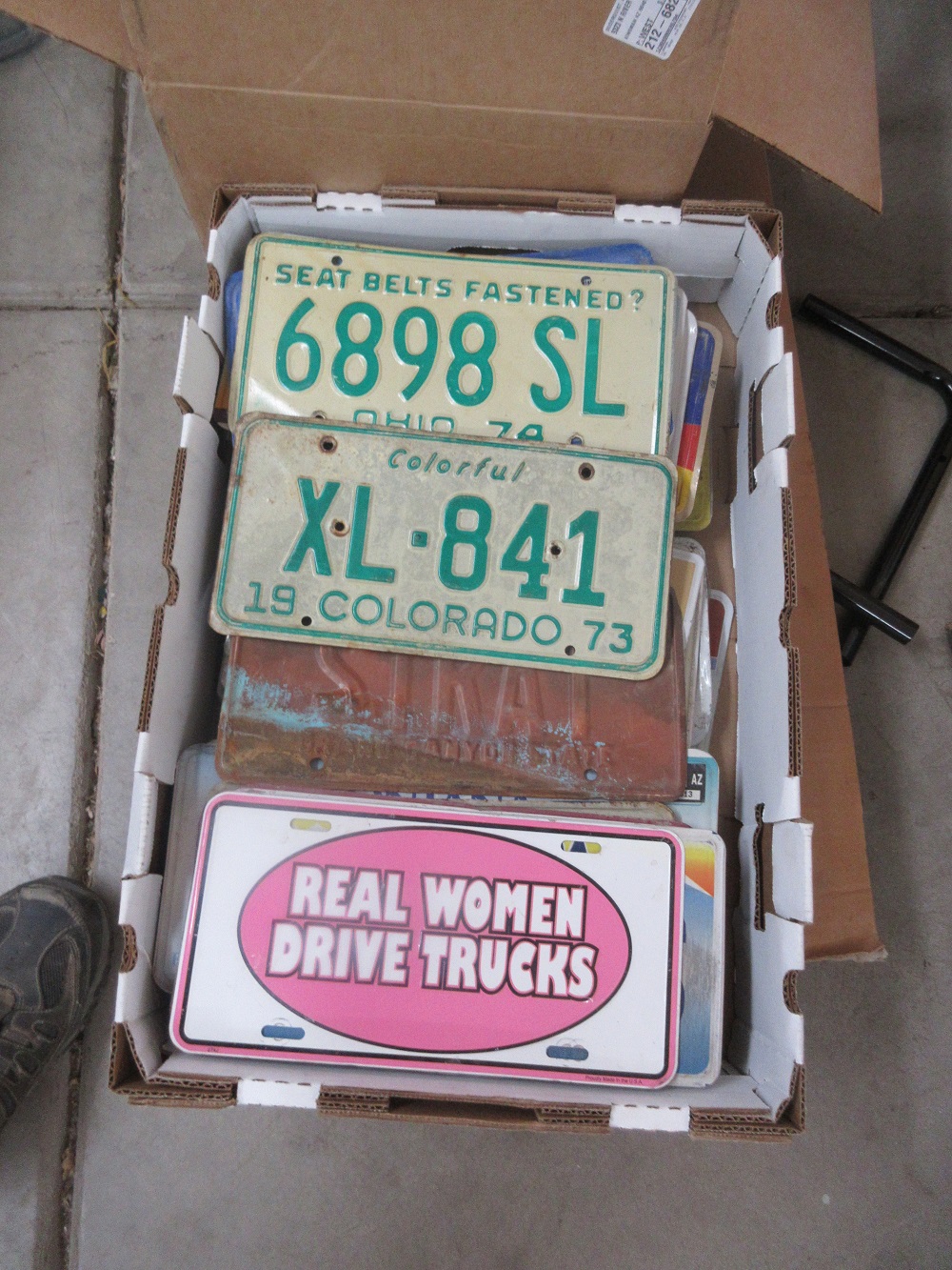 bed toolbox; 1964 Falcon radiator; Ford car parts; Black Hawk helicopter seat;