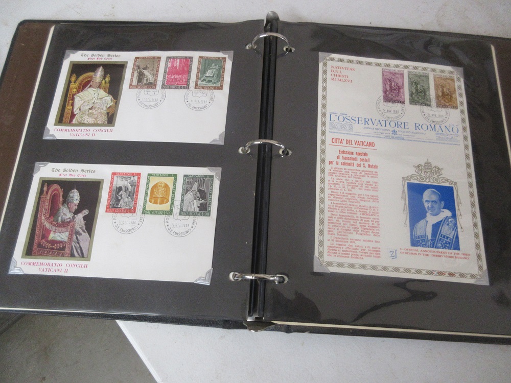 lockbox full of coins not yet sorted; Pope Paul stamps; Santa & Mrs. Santa