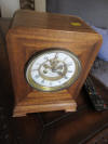 open escapement mahogany shelf clock; Jos. Boheim walnut wall clock; homemade