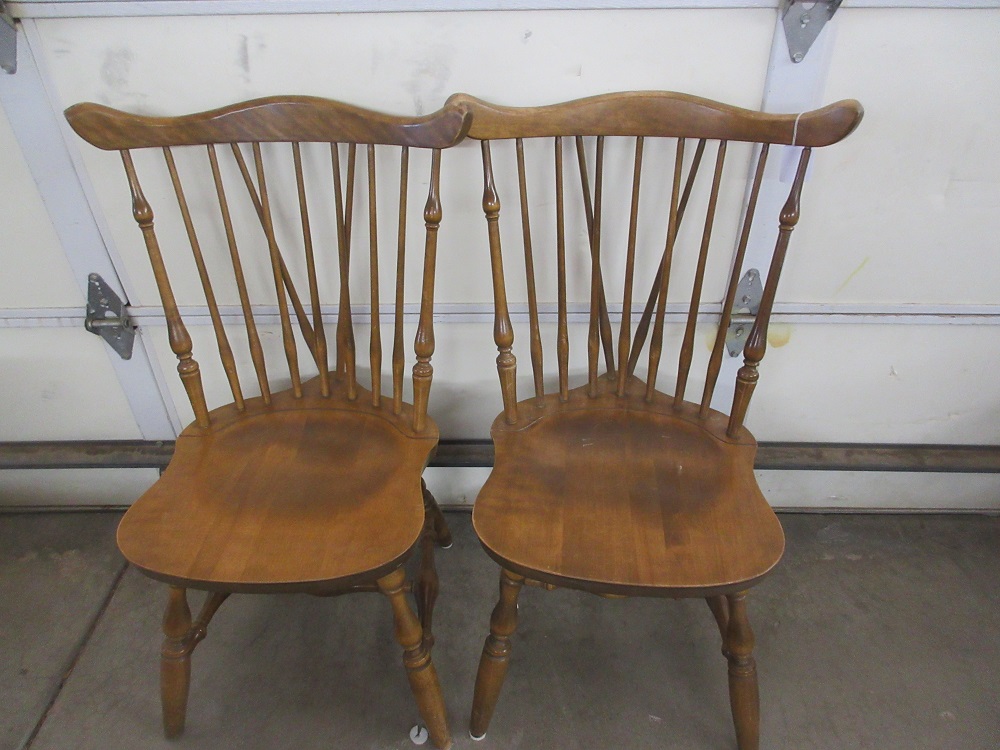 set; pair of Windsor style chairs; tile top coffee table; 2 folding screens; oak