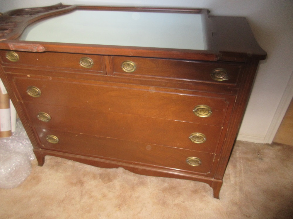 settee & 2 rocker set; oak rolltop desk; early 1900's 2 piece mahogany dresser
