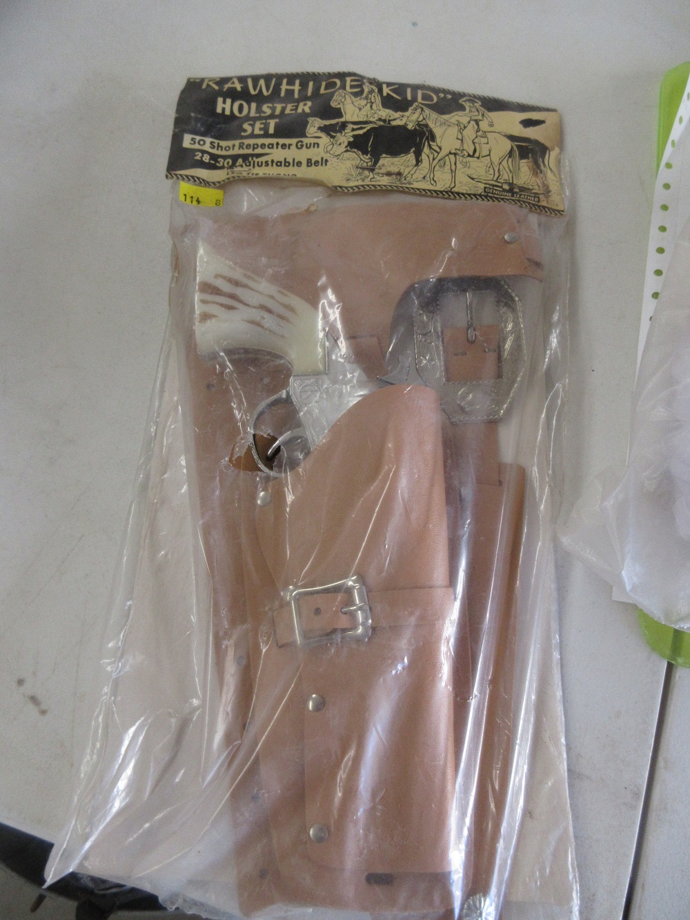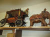 circus wagon; toy gun with holster in original package; traffic light; child's cart; yard art incl. "saguaro", "ocotillo",