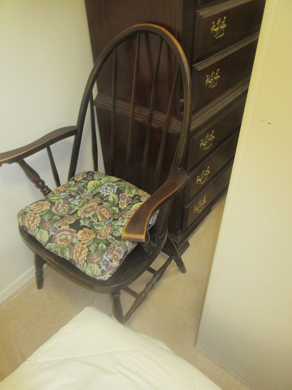 chairs; Ethan Allen filing cabinet; mahogany desk with queen Anne style feet;