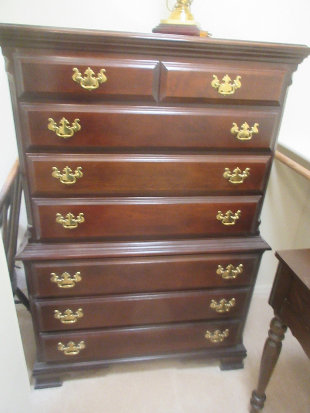 table; Sumter Cabinet Company chest on chest & night stand set; tea table;