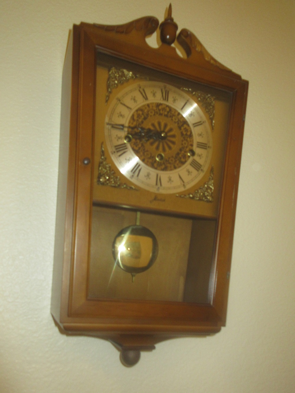 Herschede grandfather's clock; Seth Thomas mantle clock; Ethan Allen