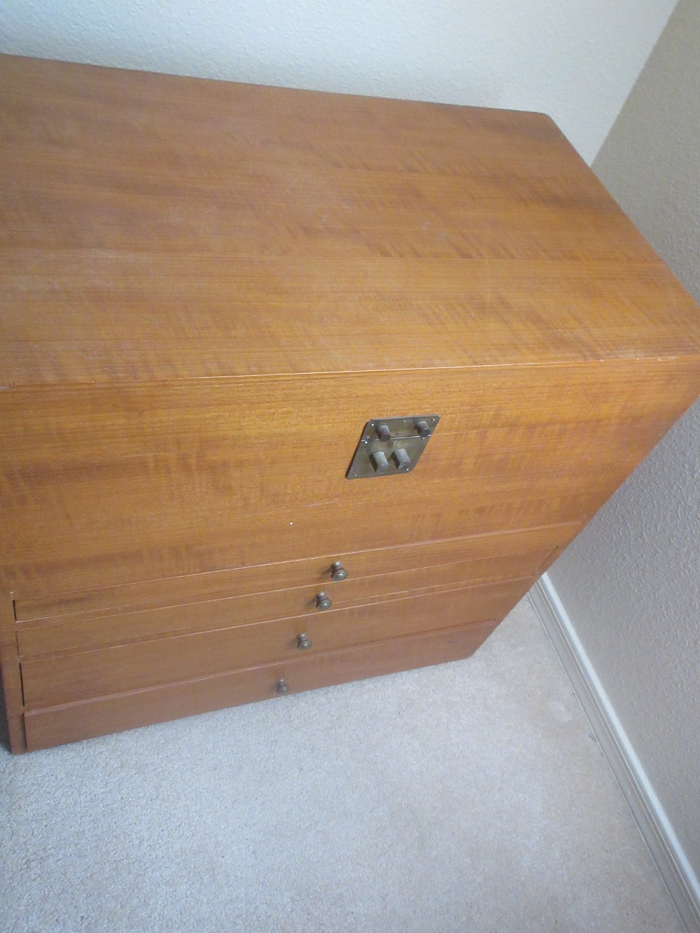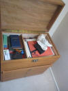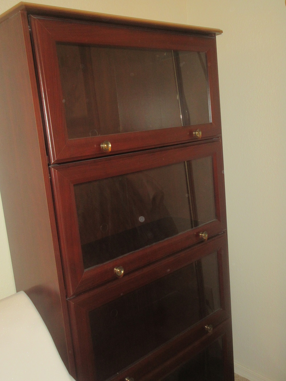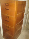 engineer cabinet (thin drawers); barrister bookcase; 4-poster bed; fancy glass