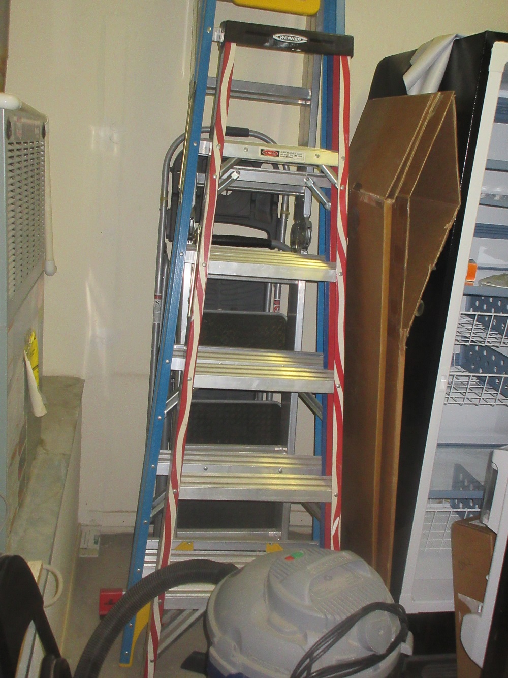 Craftsman toolbox; BBQ grill; Black & Decker pressure washer; Werner ladders;