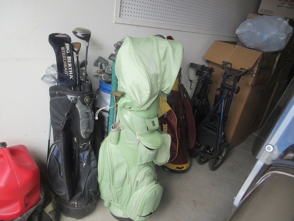 2005 Western golf cart; lot of golf clubs & carts; ProForm treadmill; Frigidaire