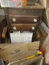 paddle board; old gas pumps in need of restoration; hutch cupboard; drawer