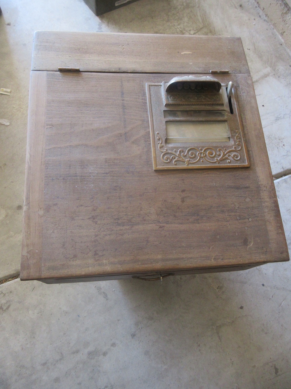 wooden cabinet; large cabinet safe; display case with drawers; animal traps; gold mining water pipe