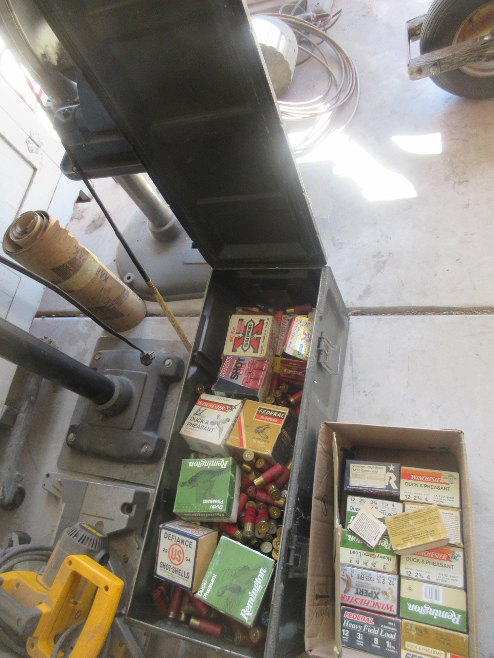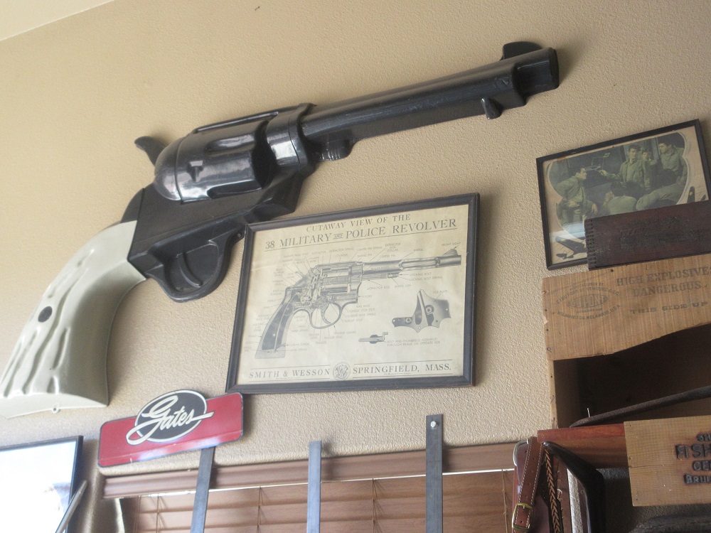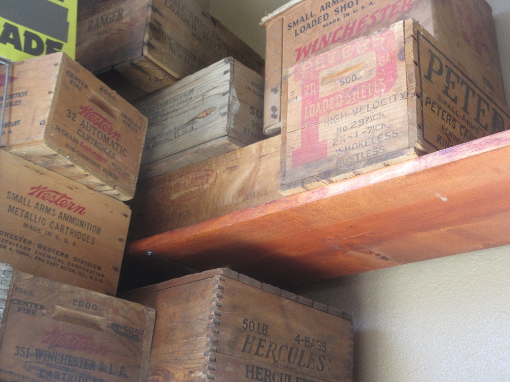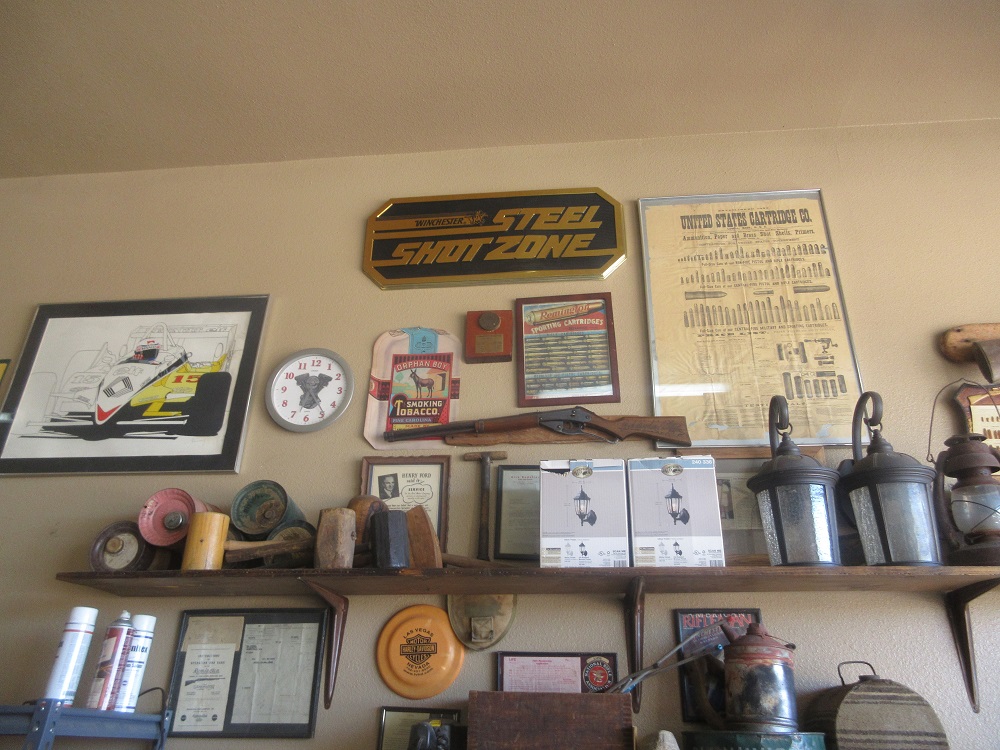 tin; advertising ammo displays & signs; cow skull; license plates; canteens;