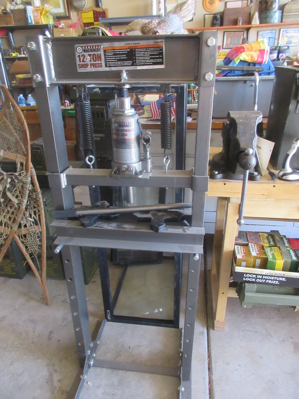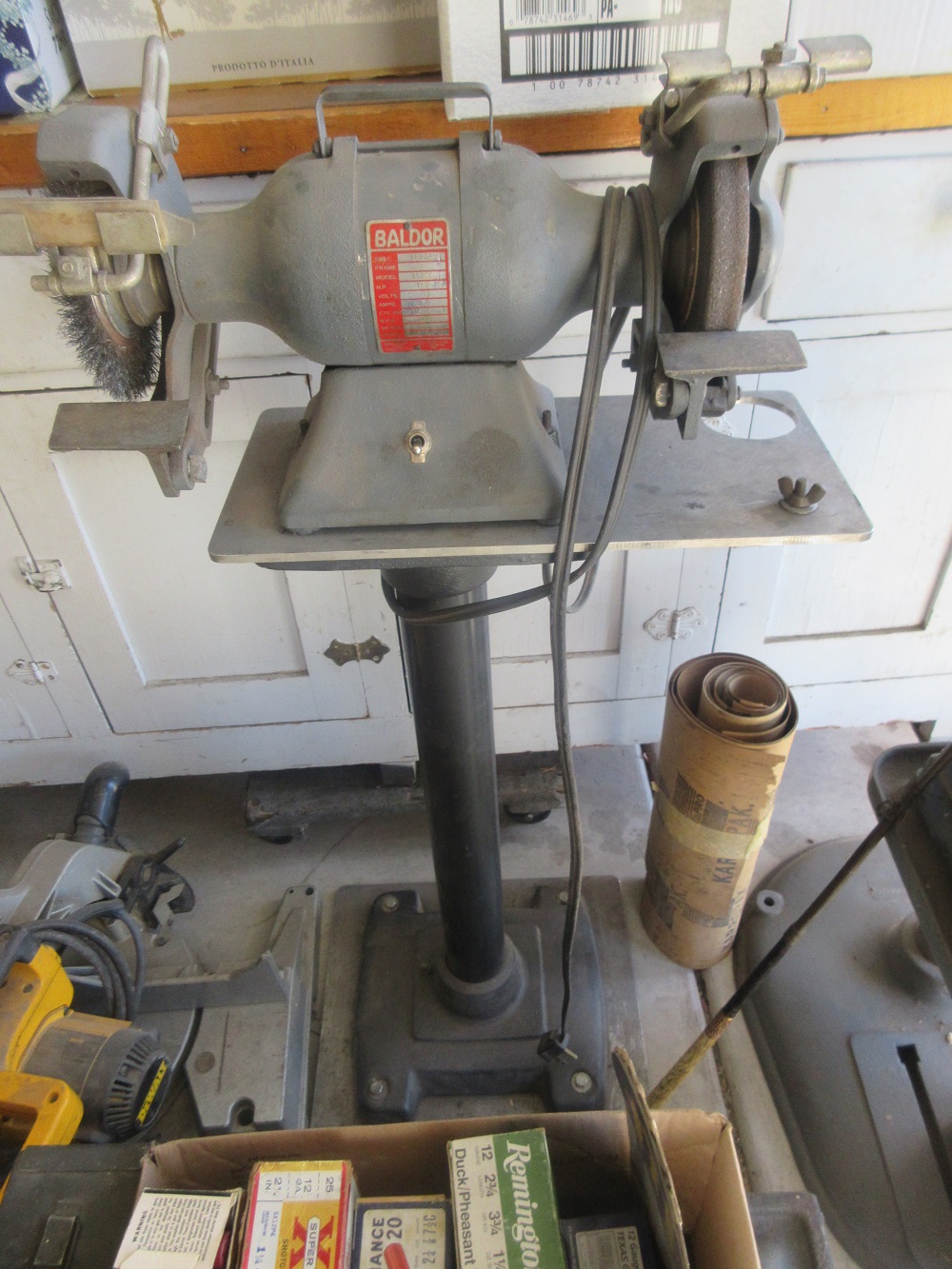 with book; Lincoln AC welder; Baldor grinder; 1/2 ton shop press; chop