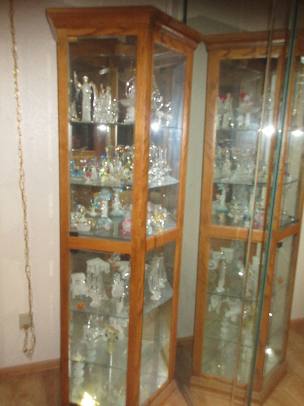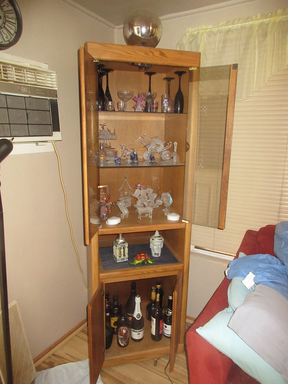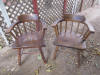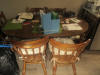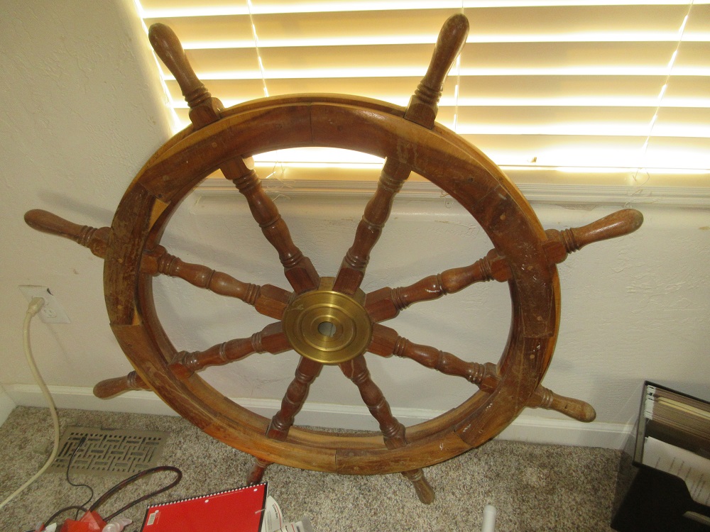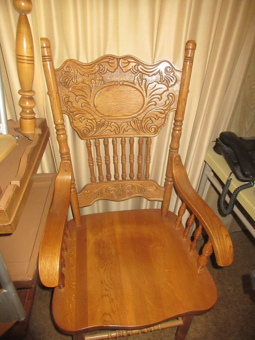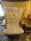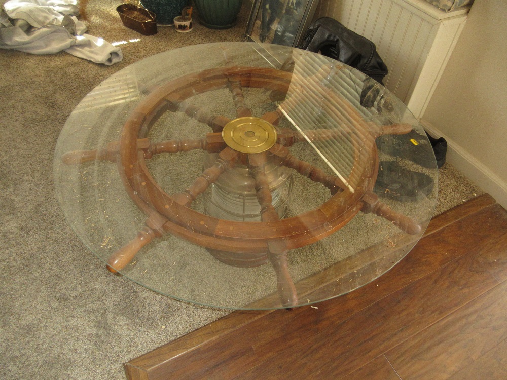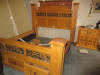 chairs; 4 piece pine bedroom set; curio cabinets; "ship's wheel" coffee table; 2