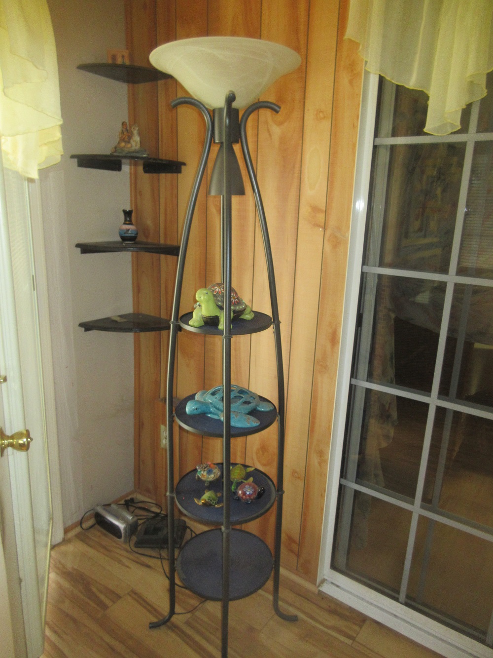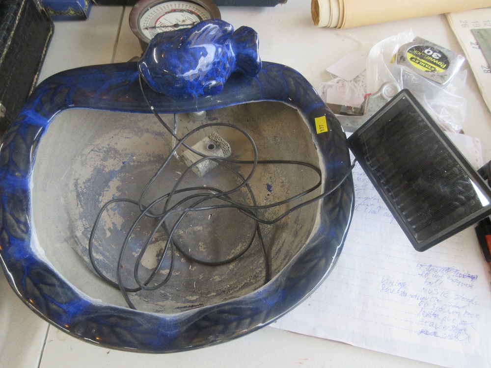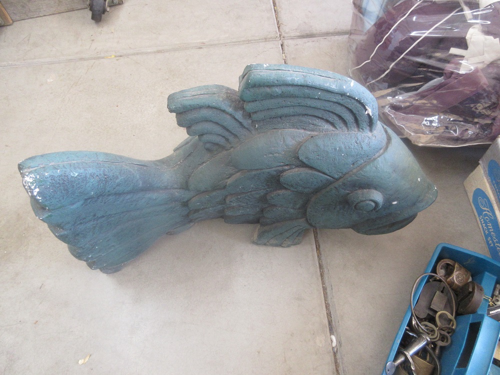 F-18 Fighter model; RC helicopter; tier floor lamp; TV's; whirligigs; birdbath;