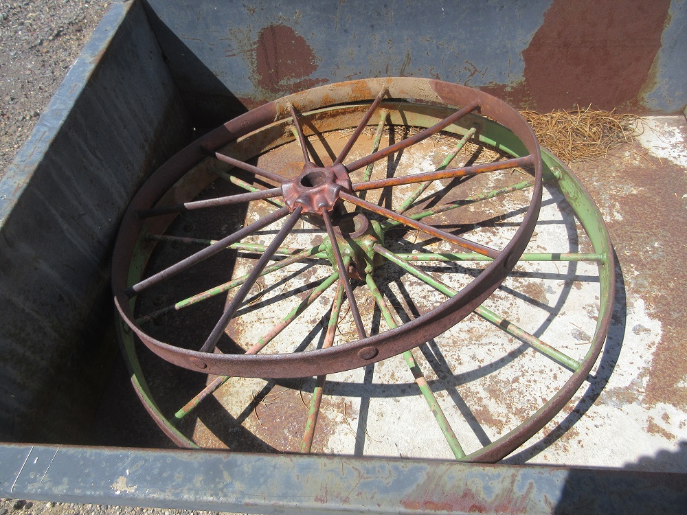 wooden ship's wheels; Family Grist Mill grain grinder; iron wheels; 1930's