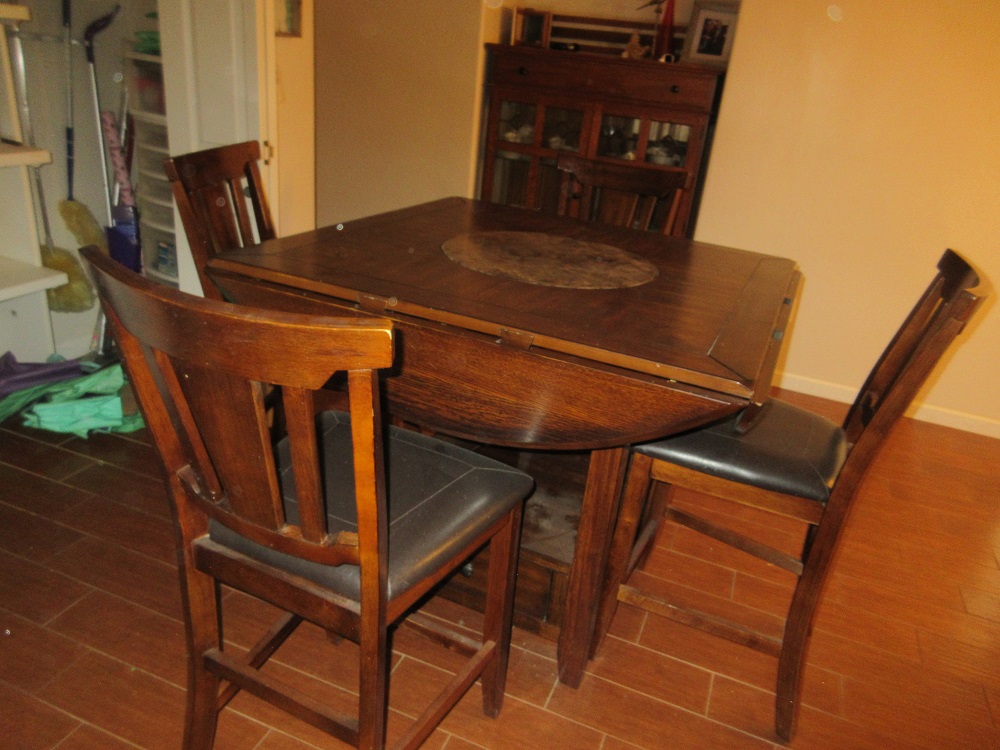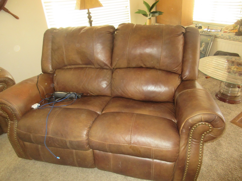 pine bunk beds; leather electric double recliner; high tile top table with 4