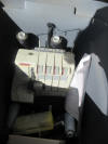 gas pump nozzles; Evinrude electric start outboard motor; large