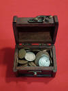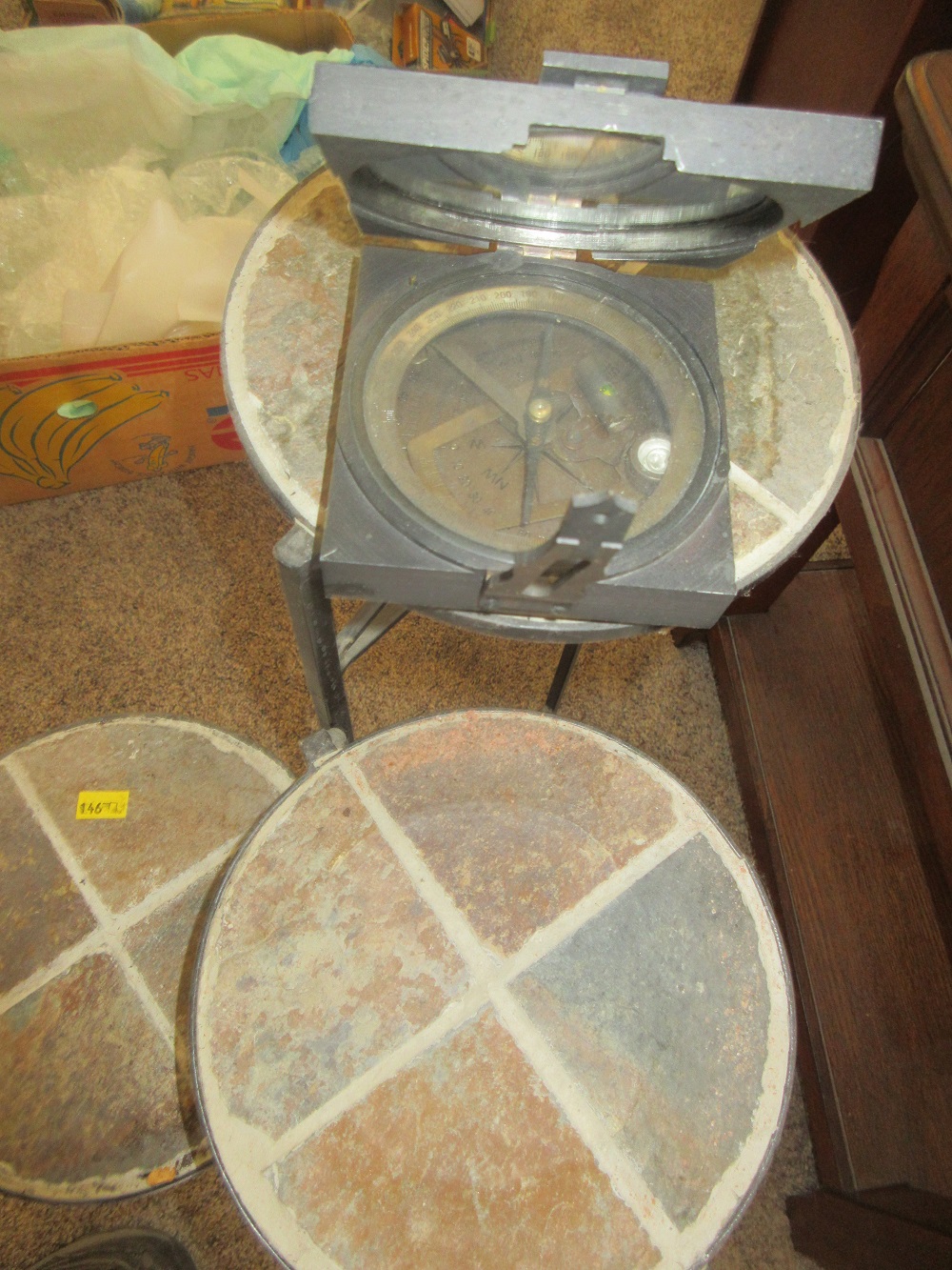 sweeper; sets of Pyrex bowls; Native American decorations; Brunton compass; 2