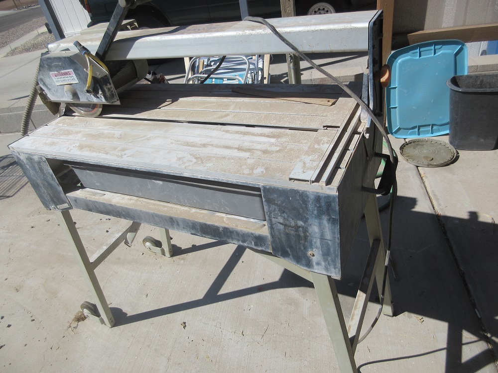 vise; 2 tile saws; Crouse Becker paint sprayer; Greco Tex sprayer; bathroom