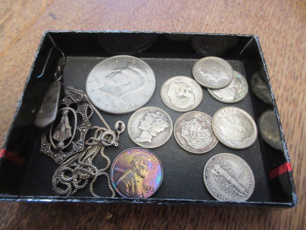 1933 5FR coins; Mercury Dimes; uncut dollar bills; Buffalo Nickels; early US copper