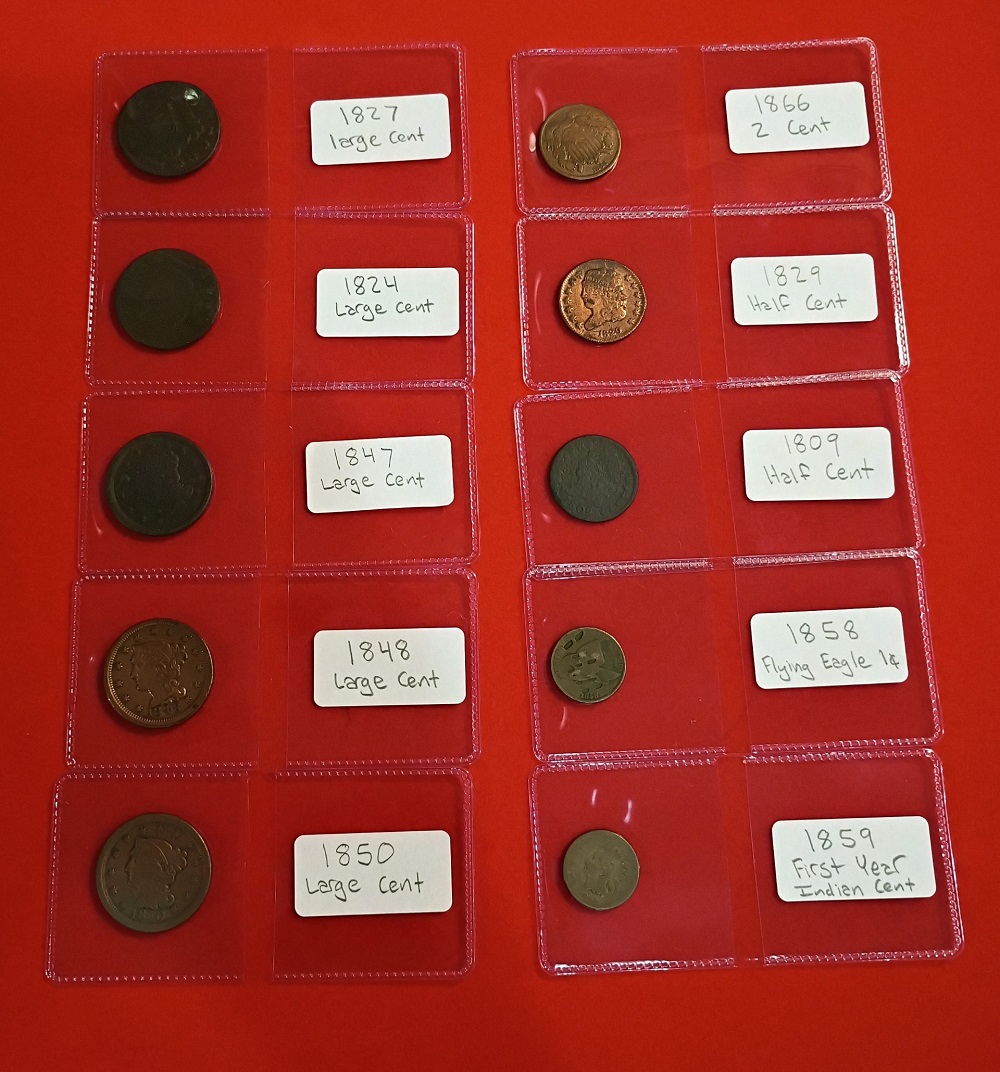 coinage incl. large US Cents, 2-Cents, flying eagle cents, & 1st year Indian