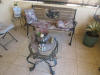 5-drawer; pair of glass topped metal based stands; coffee table with Queen Anne
