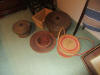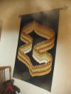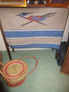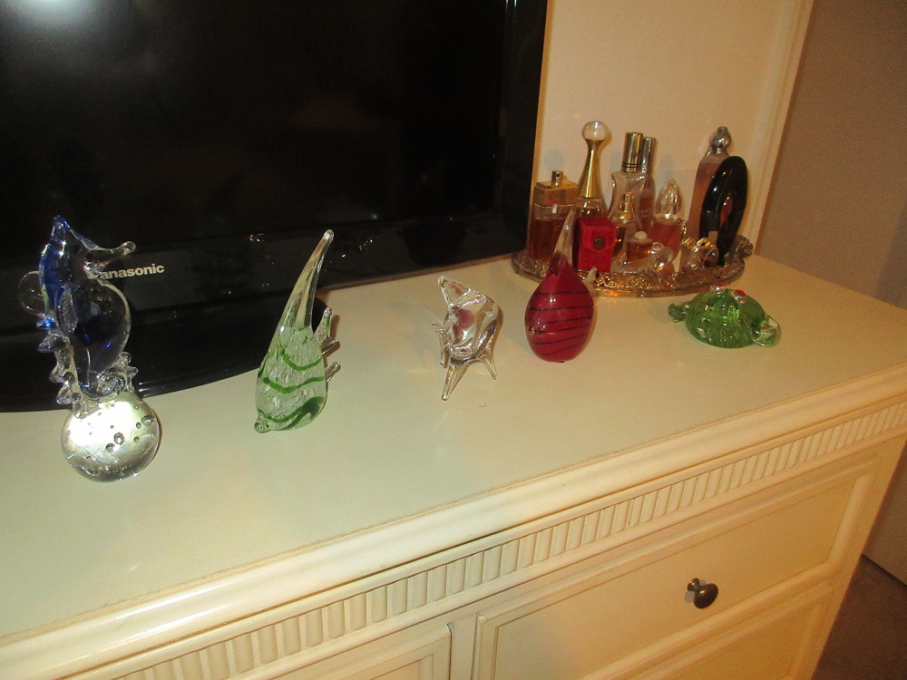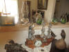 pattern; handmade "quilt top" wall hanging; perfume bottles; kerosene lamps; &