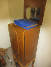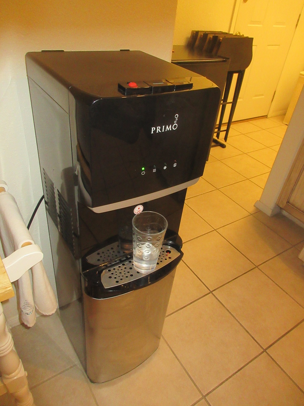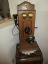 oak wall telephone with modern phone inside; Primo water dispense; pair of