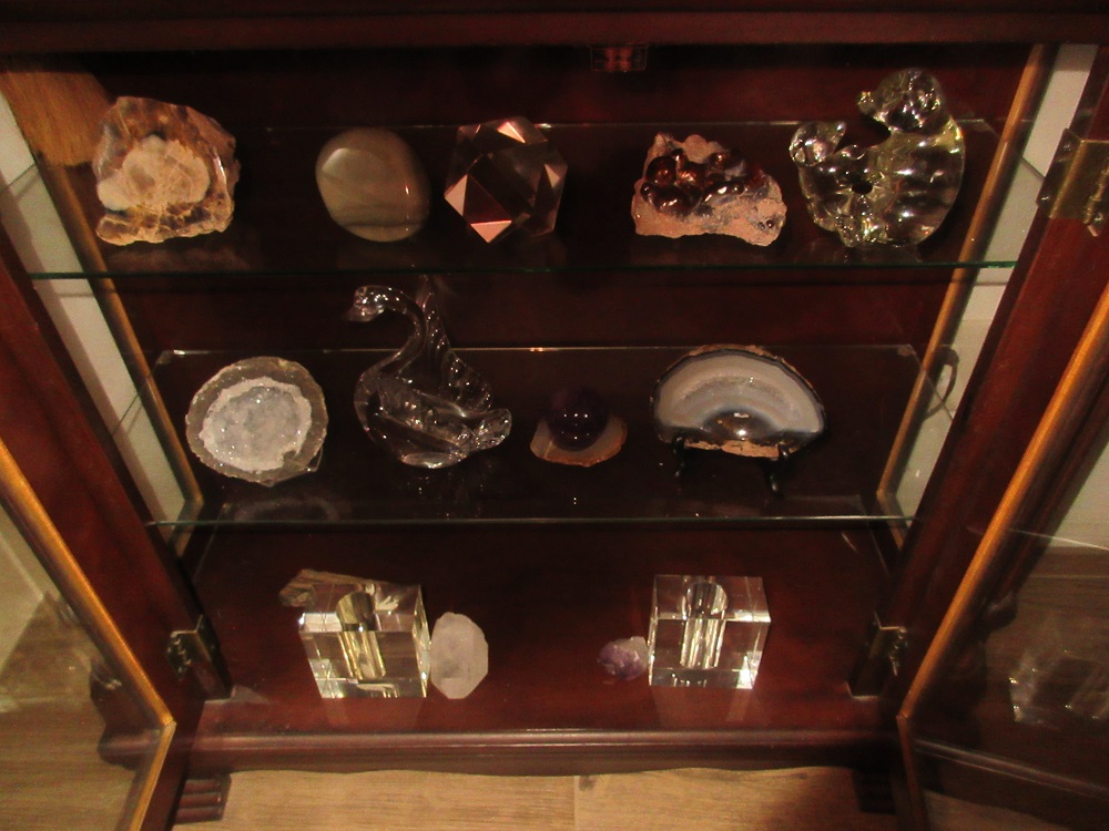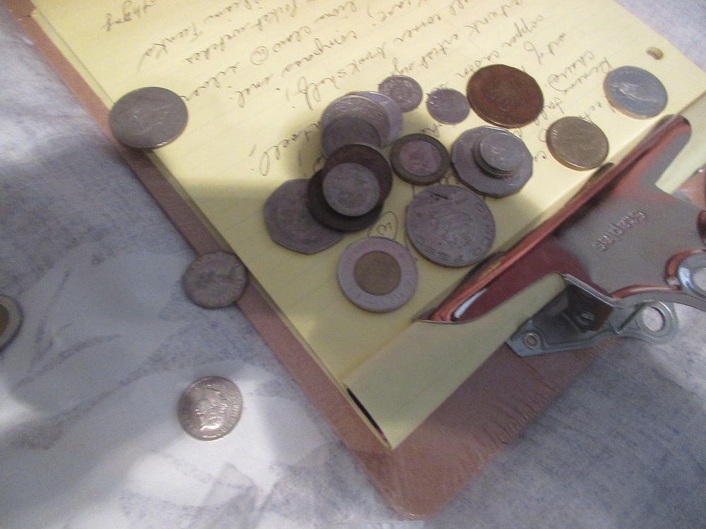 dollar coins; foreign money; Humphreys Mfg Co lighter; crystal glassware incl.
