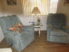 pair of suede recliners; deco 1-drawer stand; Lane cedar chest; marbletop