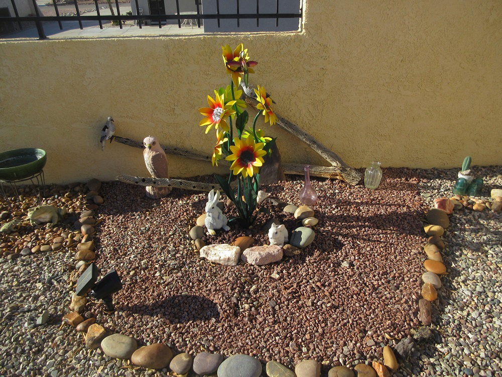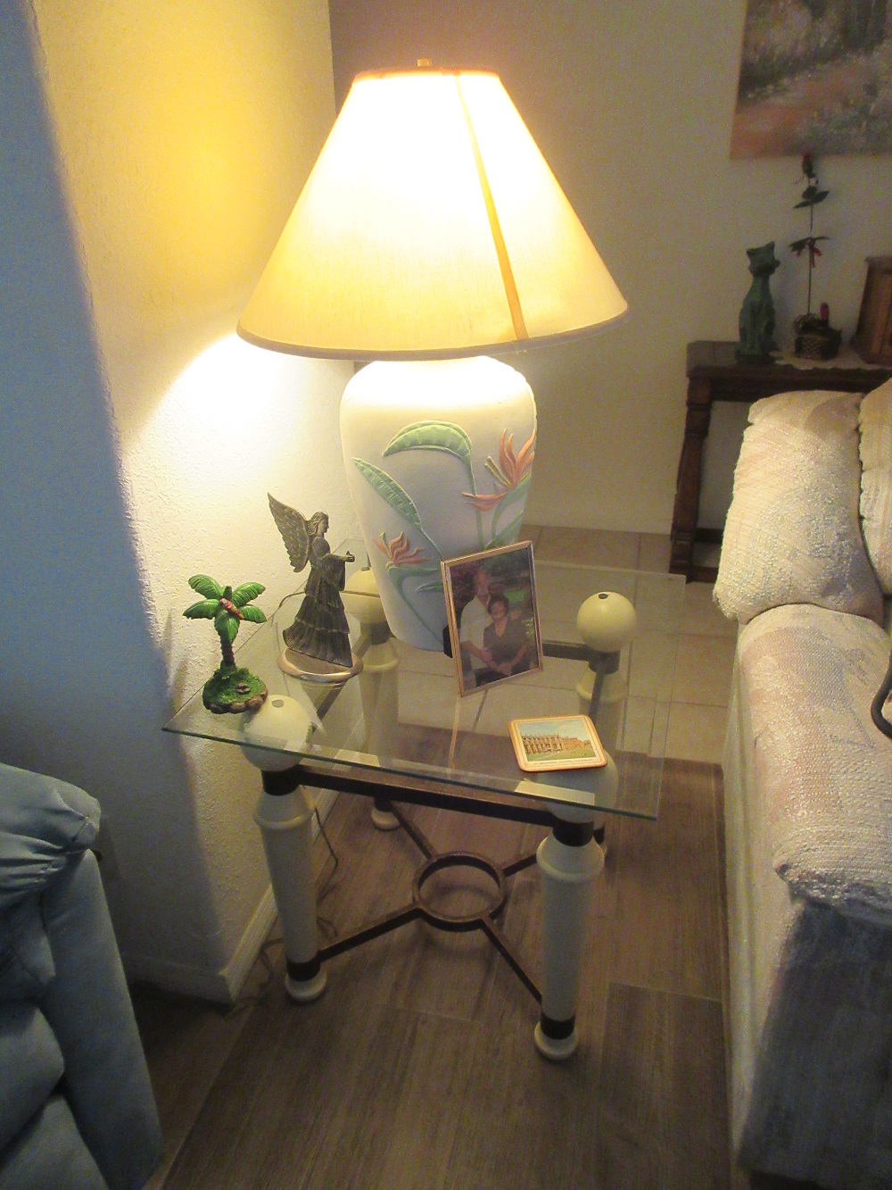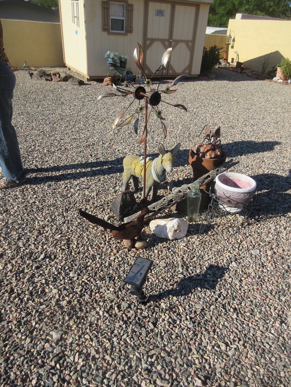 "acorn" table lamps; radio/record player; TV's; yard art incl. obsidian rock;