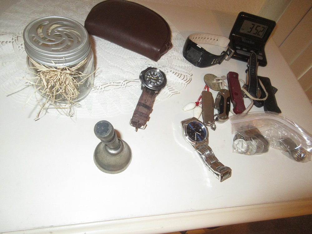 knives from Alaska; Eisenhower & Susan B Anthony dollar coins; Kennedy 1/2