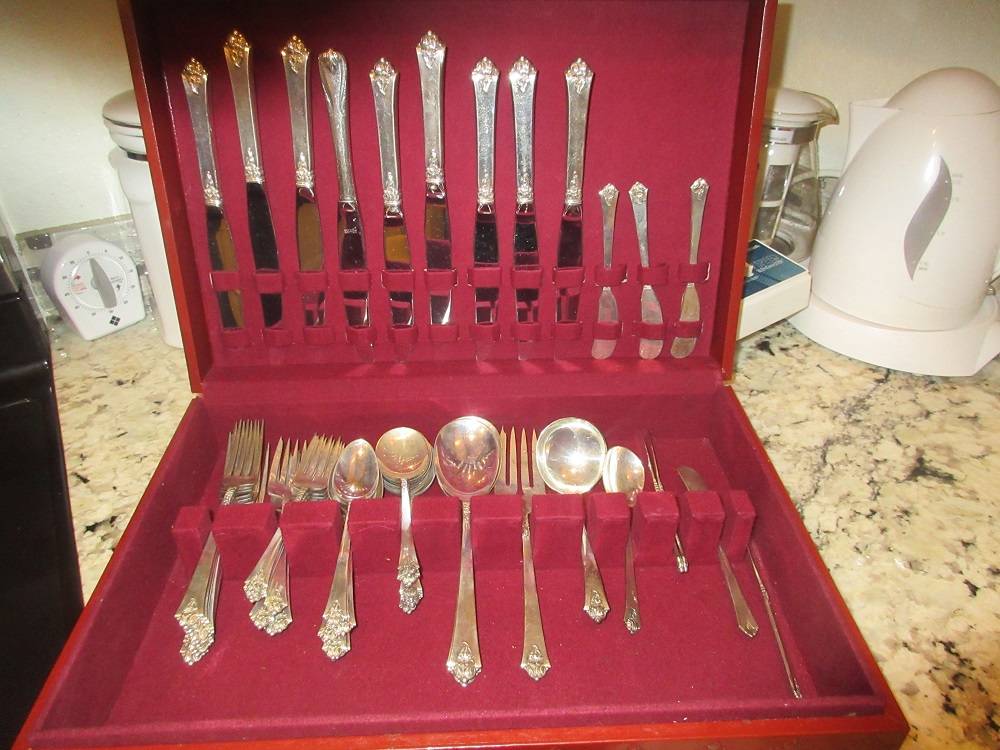flatware; set of Wallace plated silver flatware; set of ivory handled steak