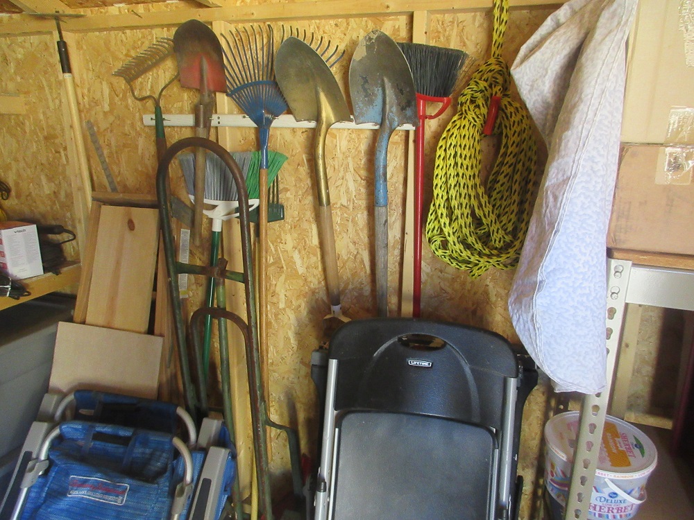 vac; hand tools; ladders; wheelbarrow; park benches; lawn chairs; & more.