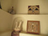 "cowboy" lamp; "cowboy art" towel holder; brass bed; easy chair & stool; French