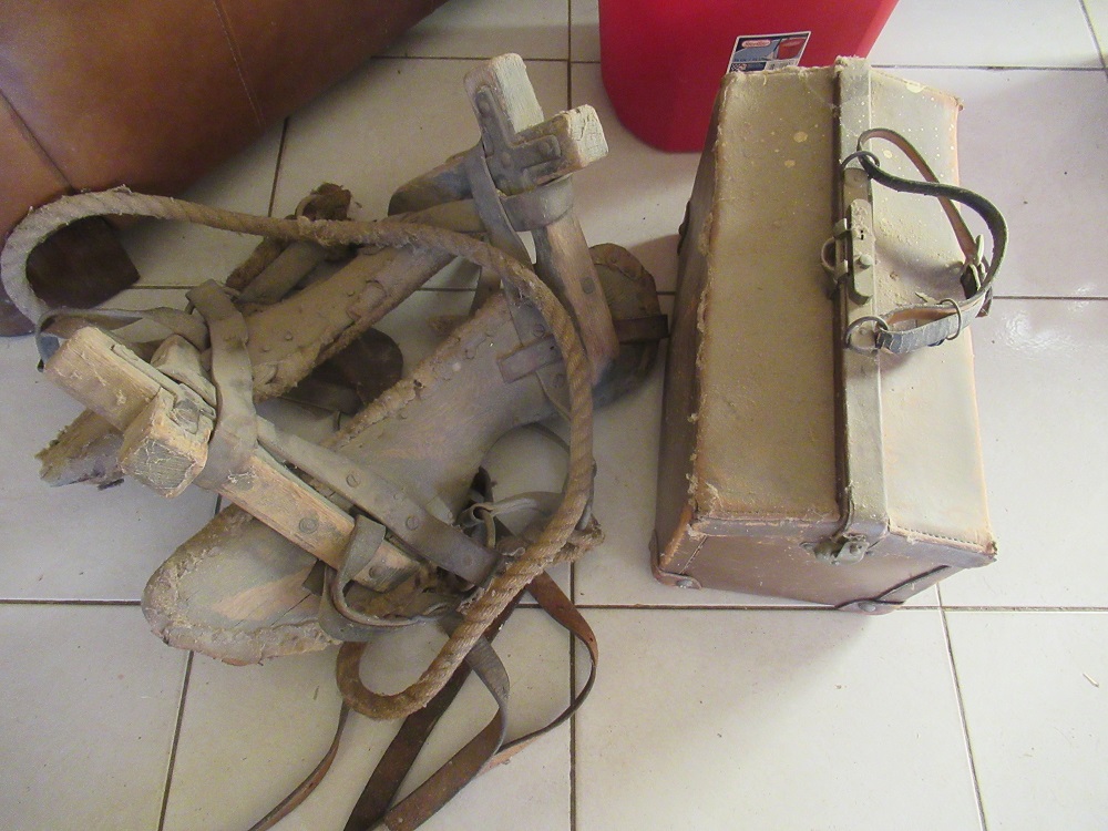 lanterns; set of 1950's bar stools (need seats); pack saddle; sadirons; barbed