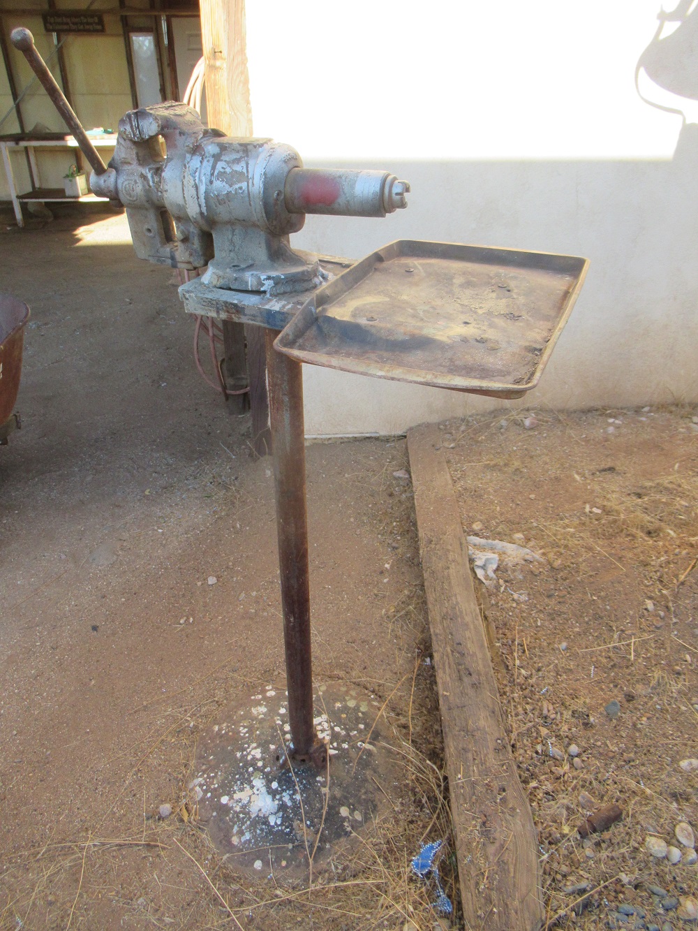 library table; old tools incl. Ford wrenches; AZ Highways Magazines; feedbag