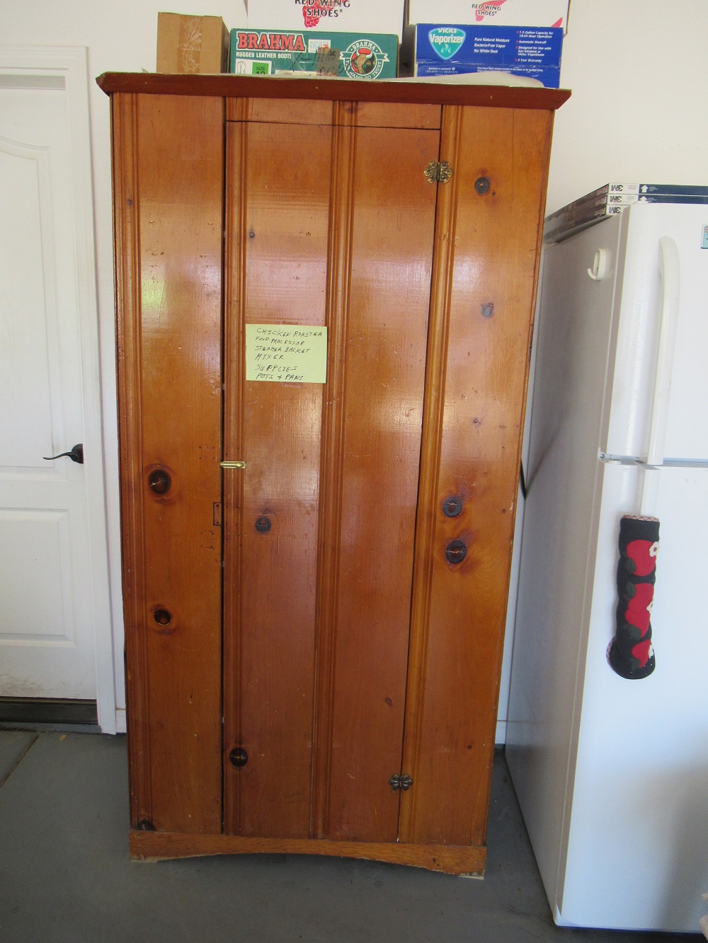 chairs; china cabinet; knotty pine cupboard; twin adjustable beds; maple